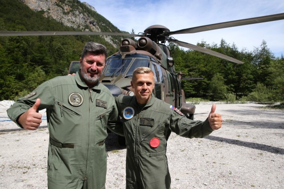 Matej Planko (levo) v pogovoru s pilotom Igorjem Lanišnikom. (Foto: Andraž Purg)