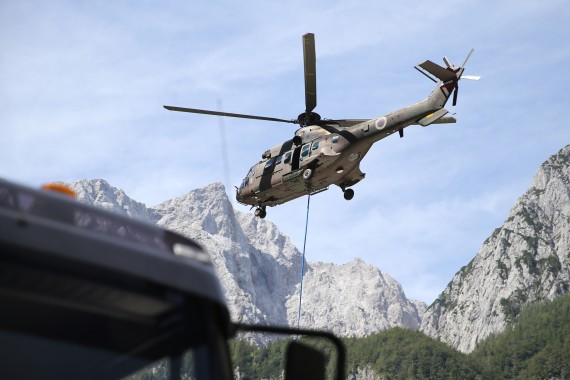 Dobro sodelovanje pripadnikov 15. helikopterskega bataljona SV in prostovoljnih planincev pri transportu materiala za novi planinski dom na Okrešlju je bilo mogoče videti tudi v sredo. Pripadniki SV so pripeljali 25 ton cementa, 14 ton armaturnih mrež in betonskega železa. »Naše delo smo razdeli v tri cikluse, vmes smo morali namreč z gorivom natočiti helikopter. V prvem delu smo najprej vozili armaturne mreže, ki so imele nekaj tisoč kilogramov. Za prevoz do Okrešlja, kjer smo premagovali 650 višinskih metrov, smo potrebovali 6 minut in 30 sekund. Najtežje del današnjega dela je bilo odlaganje gradbenega materiala, saj je na vrhu zelo omejen prostor. Ker delamo v visokogorju, kjer je potrebno paziti na veliko različnih okoliščin, smo morali biti ves čas maksimalno zbrani,« je delo pri gradnji na Okrešlju razložil podpolkovnik Igor Lanišnik, poveljnik 151. helikopterske eskadrilje Slovenske vojske. Ob tem je pohvalil dobro sodelovanje s Planinsko zvezo Slovenije, sploh pri najbolj zahtevnih delih v visokogorju. Pri delu je sodelovala širša ekipa. Poleg dveh pilotov so pri prevozih pomagali še dva tehnika letalca in gorski vojaški reševalec, saj je moram biti tovor varno in kakovostno pripet.