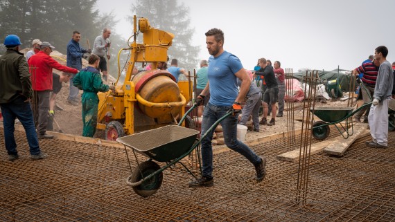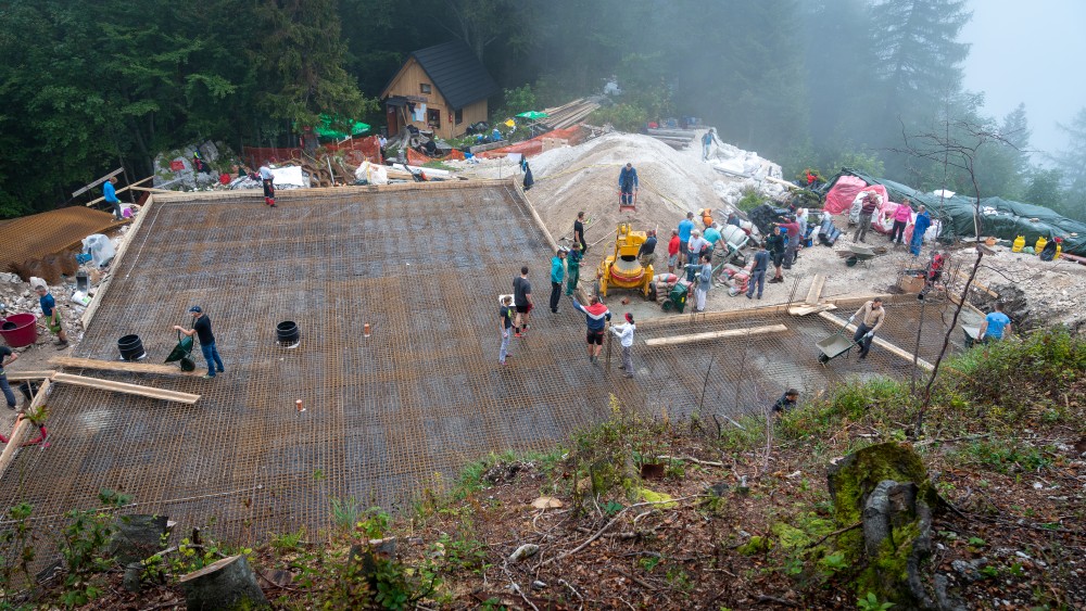 Če smo v sredini preteklega tedna na pogorišču starega Frischaufovega doma na Okrešlju slovesno položili temeljni kamen za nov dom, je konec tedna skupina zelo delovnih prostovoljcev skupaj z izvajalcem gradbenih del že zabetonirala temeljno ploščo za nov dom. V Planinskem društvu Celje Matica se veseli, da se je delovne akcije udeležilo več kot 60 prostovoljcev.