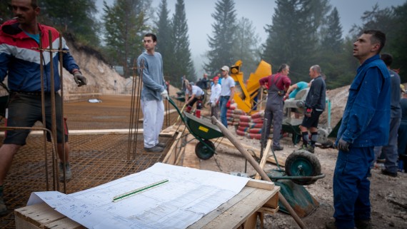do večernih ur zelo delovno. Pri zalivanju temeljne plošče na Okrešlju je poleg