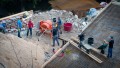 ročno mešali s tremi mešalci in vgradili so dobrih 105 kubičnih metrov betona.