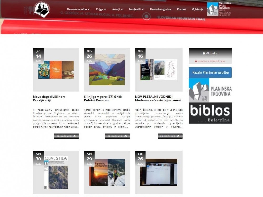 Na strani planinskazalozba.pzs.si predstavljamo organizacijo izdajanja knjig, zgodovino založbe, novosti v letu 2021, e-knjige in področje zemljevidov.