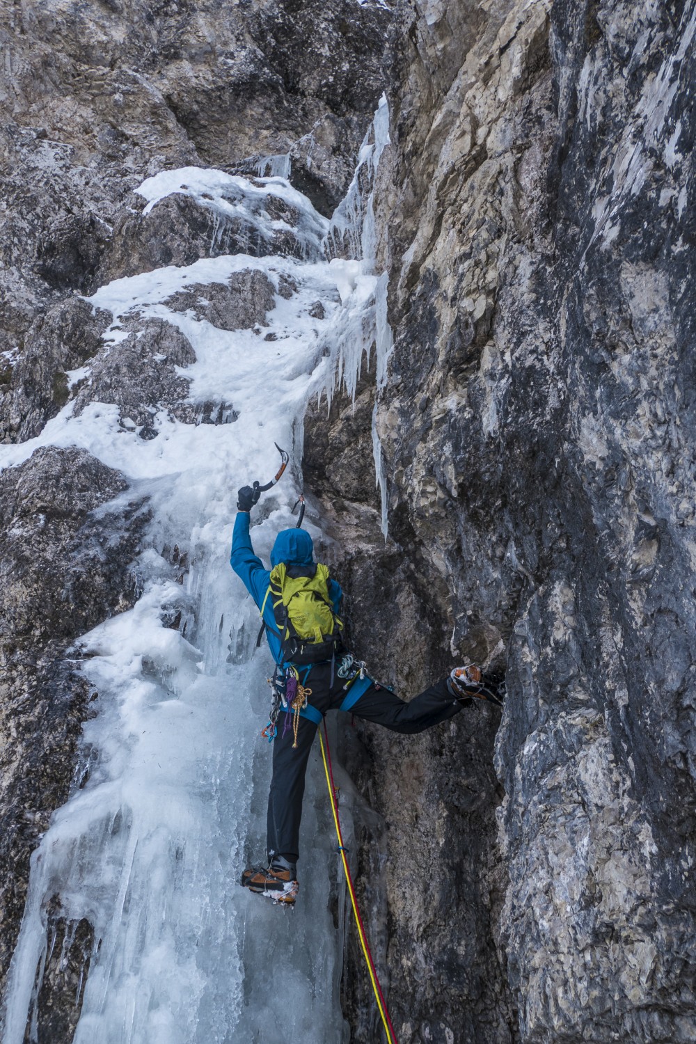 17. 1. 2021 Žiga Rozman: V nedeljo smo se odpravili plezat slapove na Jezersko. Navezi Levičnik-Štular in Česen-Volontar so se "tuširali" v Spodnjem Ledinskem slapu. Bor in Matevž sta zaradi neoptimalnih razmer obrnila raztežaj pod vrhom, Aleš in Matija pa sta slap splezala v celoti. Frelih in Rozman sva na smučeh dostopila pod Čedco, kjer sva po preplezanem lažjem spodnjem delu obrnila v sveči Čedce 3.0. Kljub neoptimalnim razmeram in skromnemu plezalnemu izkupičku je bila akcija uspešen premik fokusa od smučanja nazaj k plezanju.