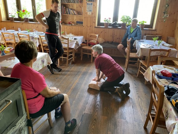 Prikaz dela z defibrilatorjem in tečaj prve pomoči za planince pod okriljem PD Javornik Črni vrh nad Idrijo (foto arhiv organizatorjev)