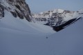 Z več energije je nadaljevanje potekalo bolje in kljub muhastim snežnih razmeram nama je uspelo preplezati par dobrih kombiniranih smeri. Ravno to je bil najin plan za prvi del akcije, saj sva hotela bit dobro pripravljena za večje stene ko bi se naj začela pomladna sezona zanje. Med številnimi idejami, sva se odločila, da preveriva zelo atraktivno novo linijo v severni steni Mt. Kitchener. Ko so snežne razmere dovolile sva dostopila do pod stene. Tam sva z daljnogledom dolgo opazovala linijo in dogajanje v steni. Odlična linija naju je tako zaslepila, da kar nekaj časa nisva hotela videti ogromnega seraka. Hitro je postalo jasno, da je linija plezljiva in verjetno ponuja odlično kombinirano plezanje, a tudi, da je polovica linije izpostavljena seraku. V takšnih trenutkih te zamika, da bi zamižal na eno oko in tvegal, ker je linija tako mikavna. Midva sva se odločila za povratek.