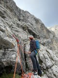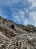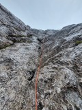 Violinca, VI+, 120 m, Nad Šitom glava, JV stena, Gašper Ravnjak, Anja Kišek, Gašper Valjavec