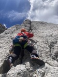 Anja Kišek: Kljub slabi vremenski napovedi je tabor izpolnil pričakovanja. Vreme nas je prisililo, da smo izbrali lažje dostopne cilje, zato se je naša naveza (Gašper, Gašper in Anja) oba dneva podala v stene Nad Šitom Glave. Prvič sem izkusila plezanje v dežju in dobila motivacijo (in kanec poguma) za plezanje nekoliko težjih smeri, kot sem jih navajena plezati v enakovredni navezi. Hvala PZS in Gregorju za organizacijo, alpinistom in predavateljem za predane izkušnje ter Gašperju za potrpežljivost, vse nasvete in zgodbe ter super izkušnjo.