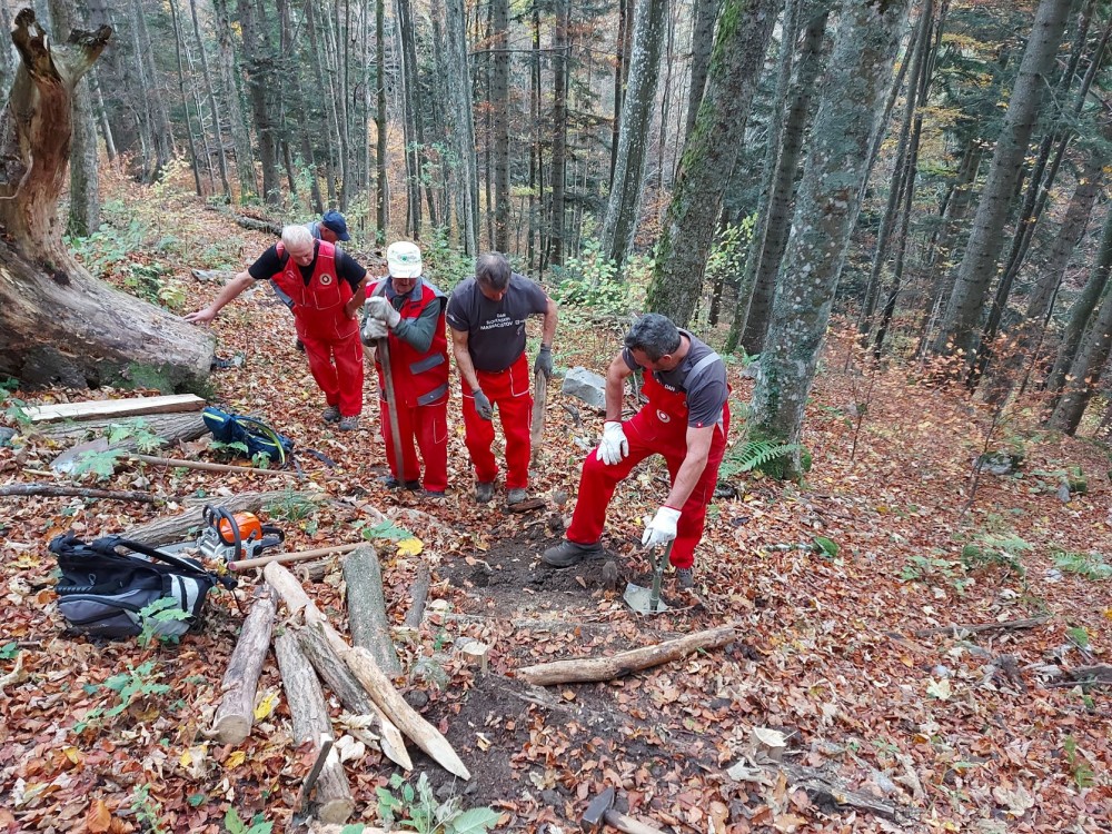 četrtek, 27. oktober 2022, ob 8. uri, ogledov: 1739 Velika delovna akcija markacistov na DolenjskemDruštva | Planinska organizacija | Poti | Splošno | | Komisija za planinske poti | | | Objavil(a): Barbara Gradič Oset | | V soboto, 22.oktobra 2022, je bila na Mirni gori velika markacijska delovna akcija MDO Dolenjske in Bele krajine. To je bila že druga velika akcija v letu 2022 v dolenjskem MDO-ju. Akcije se je udeležilo 44 markacistov in markacistk iz vseh planinskih društev MDO Dolenjske in Bele krajine, ki imajo markacijski odsek v društvu. Organizatorji delovne akcije so bili markacisti iz PD Črnomelj. | Zbrali smo se na Vrčicah, od koder smo odšli na delovišča. Delali smo na dveh planinskih poteh in sicer s Planine po učni poti proti Planinskemu domu na Mirni gori in planinski poti od Škrilja prav tako proti Planinskemu domu na Mirni gori. Na obeh planinskih poteh so bili markacisti razdeljeni v več delovnih skupinah, ki so izdelovale stopnice, ograje in urejale odvodnjavanja meteornih voda. S samokolnicami smo na mesta, kjer je v času dežja vedno blatna pot, navozili pesek. V sedmih urah je bilo delo na obeh poteh uspešno opravljeno.
