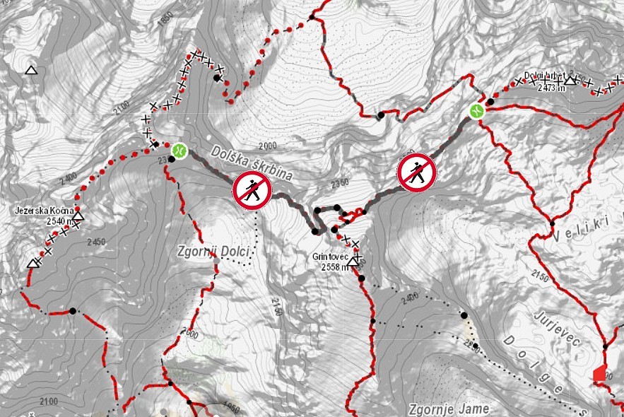 OBVESTILO UPORABNIKOM PLANINSKIH POTI: Uporabnikom planinskih poti priporočamo, da se na spletni strani stanje-poti.pzs.si, v bližnji planinski koči ali pri lokalnem planinskem društvu predhodno informirajo o dejanskem stanju planinskih poti. Če opazite poškodbe planinskih poti ali njihovo neustrezno urejenost (obledele markacije, zaraščenost ipd.), prosimo, da na naslov poskodbe.poti@pzs.si pošljete sporočilo, v katerem navedite, na kateri planinski poti ste opazili pomanjkljivost in pomanjkljivost opišite ter če je možno, dodajte tudi fotografijo. Poročanje je možno tudi preko aplikacije maPZS.