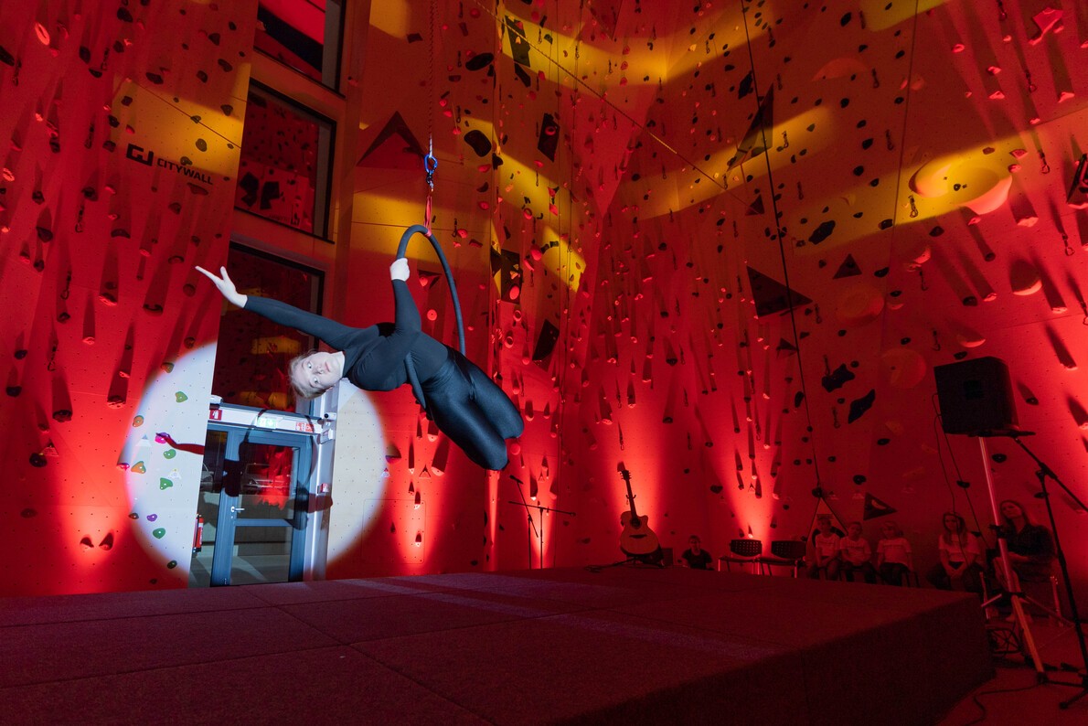 V do zadnjega kotička napolnjenem plezalnem centru so obiskovalci spremljali spektakularno odprtje, ki ga je začela Lucija Tarkuš s plezanjem na vrh 17-metrske stene za težavnost ob spremljavi pesmi Od višine se zvrti. Tarkuševa je tudi članica slovenske reprezentance v športnem plezanju. Trak sta slavnostno prerezala župan občine Slovenska Bistrica Ivan Žagar in načelnik Alpinističnega kluba Impol Slovenska Bistrica Tomi Aurednik.
