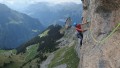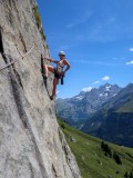 Prvi dan smo plezale v Hintisbergu. Ta ponuja cca 200m dolge smeri, težavnosti od 5c do 7c. Smeri so večinoma navrtane, vendar po hribovsko. Ker je skala zelo slabo razčlenjena, si z dodatnim varovanjem ne moreš veliko pomagati. Enako velja za plezalni ambient južne stene Rote Fluh, ki smo ga obiskale naslednji dan. Ta ponuja malo daljše smeri, do 300m, ki so nastale izpod rok alpinista Michela Piola. Njegovo mojstrstvo spominja na delo Frančka Kneza, saj dobiš med plezanjem njegovih smeri občutek, da je bil vsak prehod do potankosti premišljen in speljan po liniji z najboljšo kvaliteto skale.