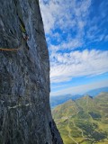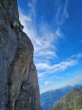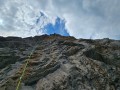 Ker nam je ob prihodu vreme prekrižalo načrte, smo prvo polovico tabora izkoristile za plezanje v južnih stenah in krajših smereh, da smo se lahko izognile prežečim popoldanskim nevihtam, ki so bile napovedane v prvi polovici tedna vsak dan in so nas prve dva dni strašile že med izplezavanjem iz smeri. Četudi so bile smeri krajše, to žal ni pripomoglo k brzini.