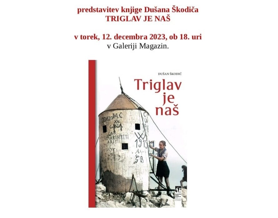 Mestna knjižnica in čitalnica Idrija in Planinsko društvo Idrija ob mednarodnem dnevu gora vabita na predstavitev knjige Dušana Škodiča Triglav je naš v torek, 12. decembra 2023, ob 18. uri v Galeriji Magazin. Z avtorjem se bo pogovarjala Anka Rudolf.