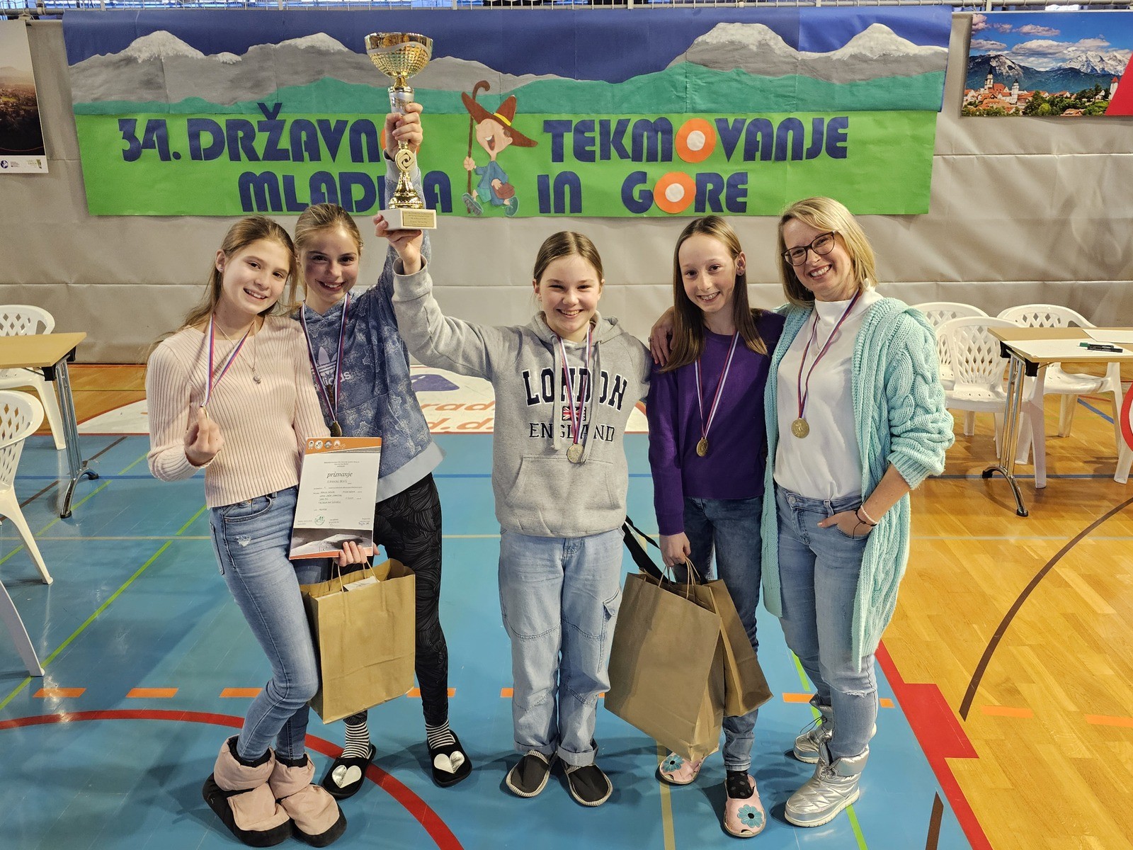 Osnovnošolske državne prvakinje Planinske brihte (PD Medvode) s somentorico Katjo Porčnik Gortnar (foto Manca Ogrin)
