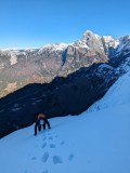 V petek si dopoldne vzamem čas, da si s pomočjo fotografske opreme pobližje ogledam stene, da bi kandidati zvečer lažje izbrali svoje cilje. V objektiv ujamem navezo Rozman-Mikuž, ki sta bila zelo mali piki v mogočni Loški steni, in ju s prostim očesom sprva sploh nisem opazil. Zvečer poročata o razmerah, in ena naveza se odloči, da poizkusi v soboto. Ostali dve naveze smo se namenili v SV steno Jerebice, ki nam je kmalu, ko smo pristopili do njenega ostenja, s pomočjo plazov, dala jasen znak, da danes ni dan za poskus v njej. Temperature so bile res visoke, prav nič zimske. Naveza št.1 je uspela v Loški steni, tako da smo se lahko veselili in skupaj praznovali še rojstni dan udeleženke. Naslednji dan, v nedeljo, smo dve navezi upali na nižje temperature in pa boljše razmere v SZ steni Prestreljenika, in se podali tja. Tretja naveza pa je odšla v SZ steno V. Pihavca. Zvečer smo se zbrali pred apartmajem, ki smo ga morali (na)hitro zapustiti, ker so prišli že novi gostje. Tako je zaključek sledil na klopci, za mizo v parku zraven drsališča, kjer smo pojedli še zadnje zaloge hrane, se družili in izmenjali vtise.