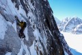 Vris nove smeri The Great Wall (1600 višinskih metrov, M7, A1, 6a), ki sta jo med 14. in 17. aprilom 2024 preplezala Gašper Pintar in Tom Livingstone (foto Gašper Pintar)