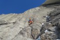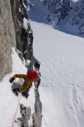 Zadnji težki raztežaj prvenstvene smeri The Great Wall v južni steni gore Mt Dickey (foto Gašper Pintar)