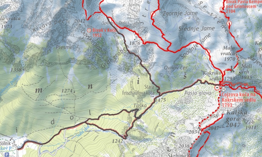 OBVESTILO UPORABNIKOM PLANINSKIH POTI: Uporabnikom planinskih poti priporočamo, da se na spletni strani stanje-poti.pzs.si, v bližnji planinski koči ali pri lokalnem planinskem društvu predhodno informirajo o dejanskem stanju planinskih poti. Če opazite poškodbe planinskih poti ali njihovo neustrezno urejenost (obledele markacije, zaraščenost ipd.), prosimo, da na naslov poskodbe.poti@pzs.si pošljete sporočilo, v katerem navedite, na kateri planinski poti ste opazili pomanjkljivost in pomanjkljivost opišite ter če je možno, dodajte tudi fotografijo.