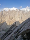 ponedeljek, 8. julij: Druženje. Plezanje smeri Contrefort d'Ortutyubek, A better world, 6c, 350 m, vrh 3895 m. Spust po vrvi po smeri. Vreme deževno.