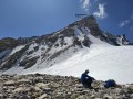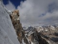 Spao Ri (aka T9) 6107 m. Pogled iz severne stene proti zahodu, tik preden se je Jošt med opastmi skobacal na zahodni greben.