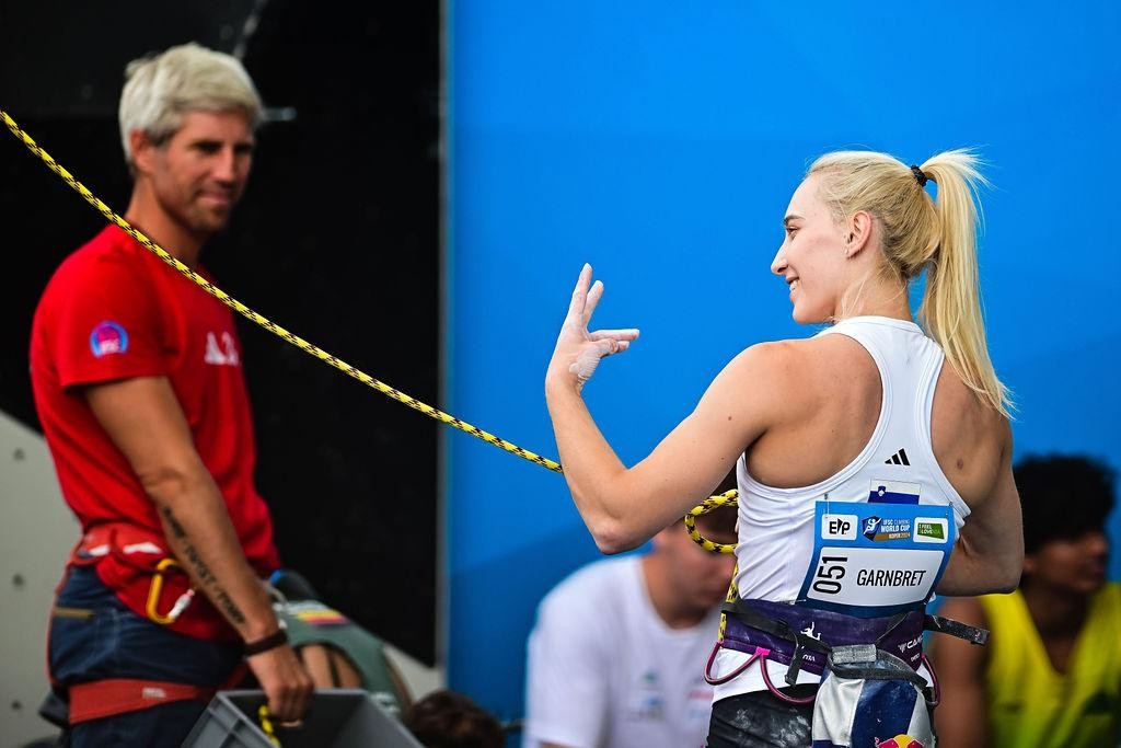 "Kot kaže, dobro plezam, sploh brez pritiska olimpijskih iger. Uživala sem, četudi sem dolgo čakala na svoj nastop in mislila, da še ne bom isti dan na vrsti. Navijači so bili krasni, vesela sem, da sem se odločila za nastop v Kopru, ker drugače ne bi več tekmovala po olimpijskih igrah. Polfinalna smer mi je bila lažja od kvalifikacijske, a kot kaže, dobro plezam v vseh težavnostih," je dejala dvakratna olimpijska prvakinja Garnbret, ki ima v svetovnem pokalu že 45 zmag: "Četudi se jutri ne bo izšlo za zmago, mi ne bo žal, da sem se odločila za Koper. Vsakič in vsako smer dam vse od sebe, osredotočim se le nase, to bom naredila tudi jutri v finalu. Vem, da bo še več ljudi in bo še boljše vzdušje."