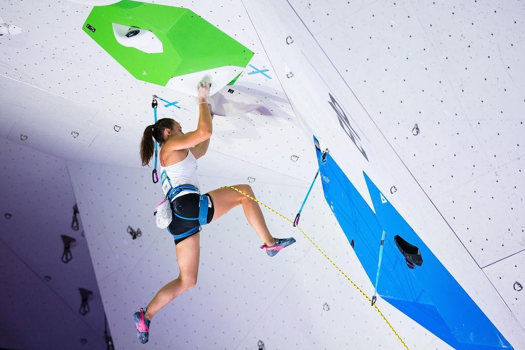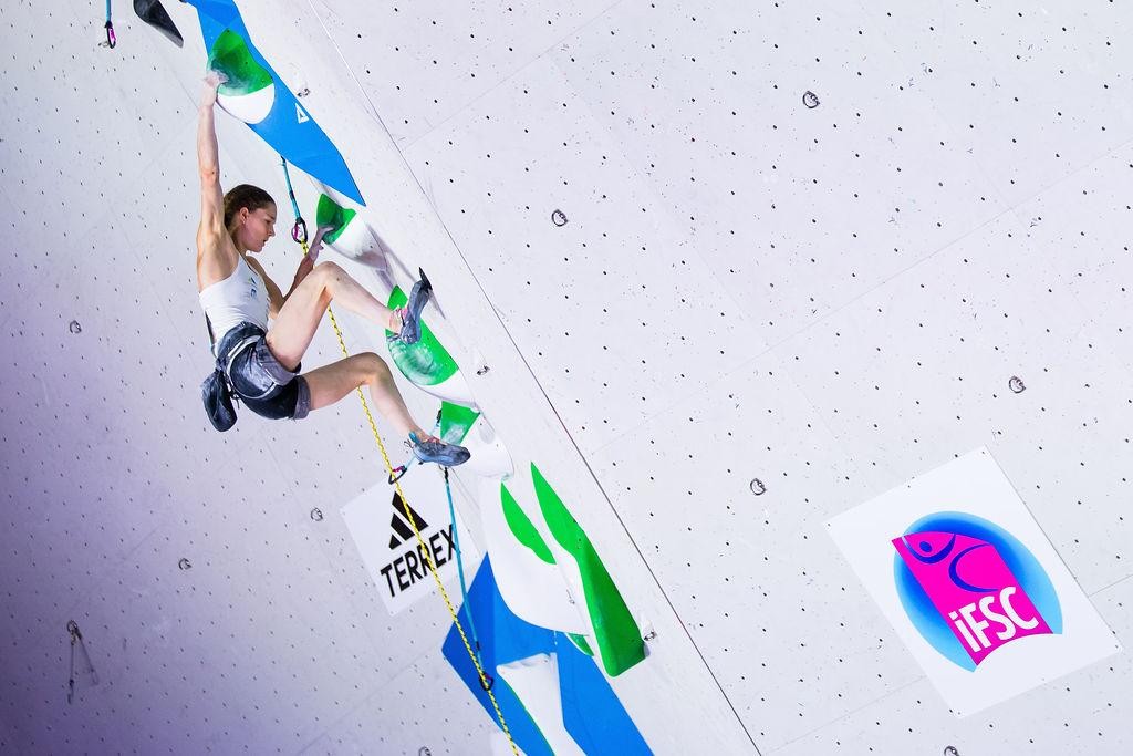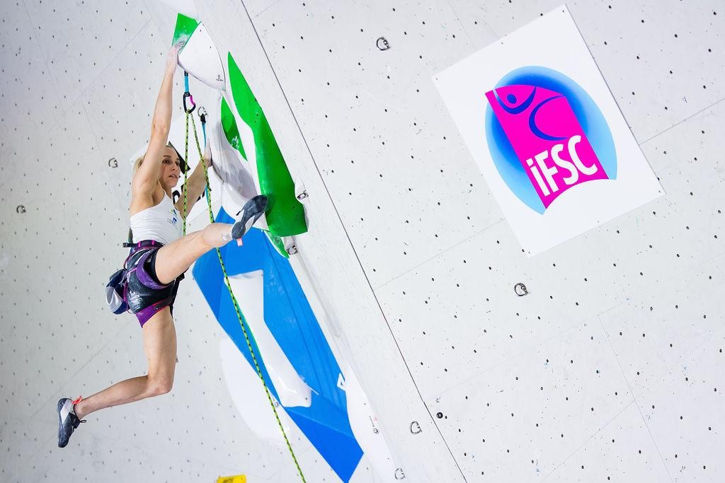 Dvakratna olimpijska prvakinja Janja Garnbret kot vodilna vstopa v finale tekme pred domačim občinstvom, kjer bo branila lansko zmago (foto Grega Valančič)