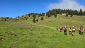 V lepem vremenu se je pri domu zbralo preko 50 pohodnikov in nekaj turnih kolesarjev, ki so na Malo planino, glede na svoje sposobnosti in želje, prišli z različnih izhodišč. Najvztrajnejši so pohod začeli povsem v dolini, v Stahovici in Krivčevem. Nekateri so si pohod skrajšali z izhodiščem na prelazu Kranjski rak (Volovjek), spet drugi, pa so izbrali v najkrajše možne pristope in začeli svoj pohod na Rakovi ravni ali pri Jelševem konfinu. Mogoče je za pristop kdo izbral tudi gondolo na Veliko planino in preskusil novo, zelo predimenzionirano šest-sedežno sedežnico, ki te pripelje na vrh Gradišča. Zanimivo varianto sta izbrala tudi dva turna kolesarja, ki sta s kolesarjenjem začela v Kamniku, do koder sta se pripeljala z vlakom. Organiziran pohod PD Črnuče se je letos začel na Kranjskem raku (Volovjeku), do koder smo imeli s Črnuč organiziran avtobusni prevoz. Kot je v zahvalnem nagovoru povedal predsednik društva Nace Perne, smo bili zelo zanimiva in heterogena skupina. Najstarejši pohodnik z 88 leti, je bil 22 krat starejši od najmlajših, štiriletnikov. Na avtobusu so svetlo prihodnost društva predstavljali Planinski škratje, mladi planinci iz Osnovne šole Črnuče, s svojo z planinsko mentorico in vodnico Andrejo Dominc, ki sem jim je pridružilo tudi nekaj staršev mladih planincev.