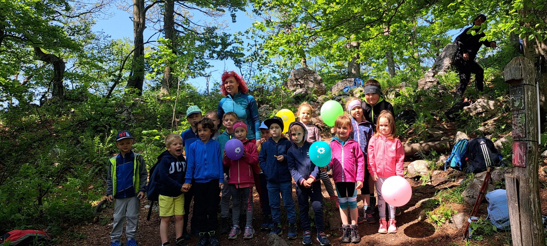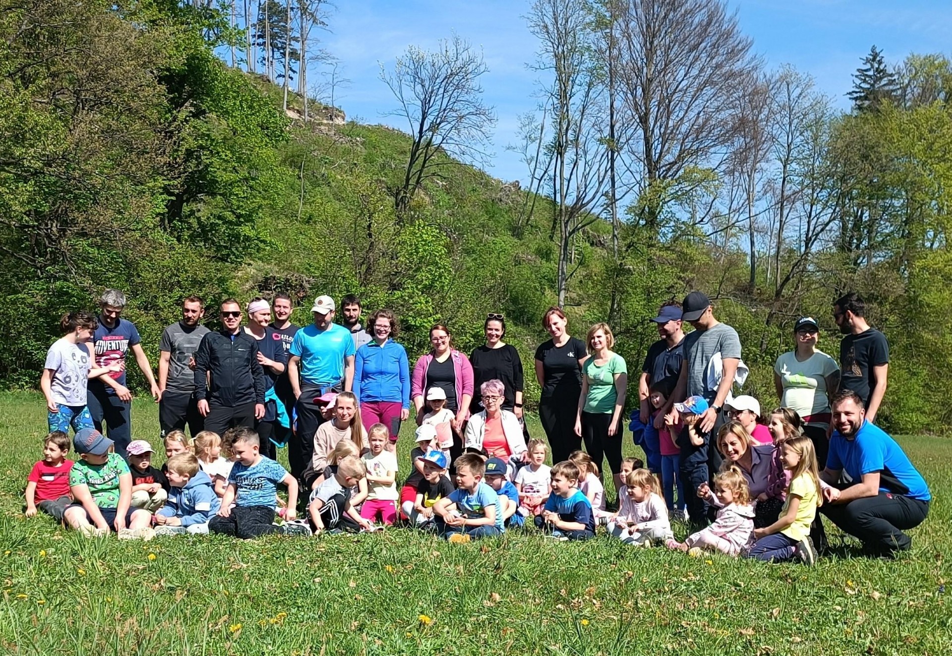 Priznanje Mladina in gore 2024 Vrtcu Otona Župančiča Slovenska Bistrica - enotama Poljčane in Studenice. Mladi planinci, starši in mentorji skupaj na ogled velikonočnice pod Bočem. (foto arhiv PD Poljčane)