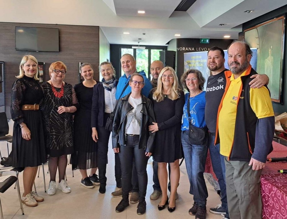 Na sliki stoji skuipina oseb z vrstnicami v roki, arhiv inPlaninec