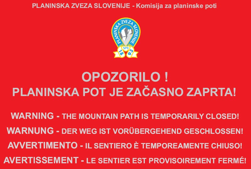 Zato, ponovno opozarjamo vse planince naj upoštevajo opozorilne table za zaporo poti, ki so nameščene.
