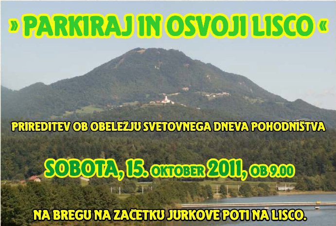 Vabljeni na prireditev ob obeležitvi svetovnega dneva pohodništva "Parkiraj in osvoji Lisco" in na pohod, ki ga bomo zaključili z družabnim srečanjem na Lisci.