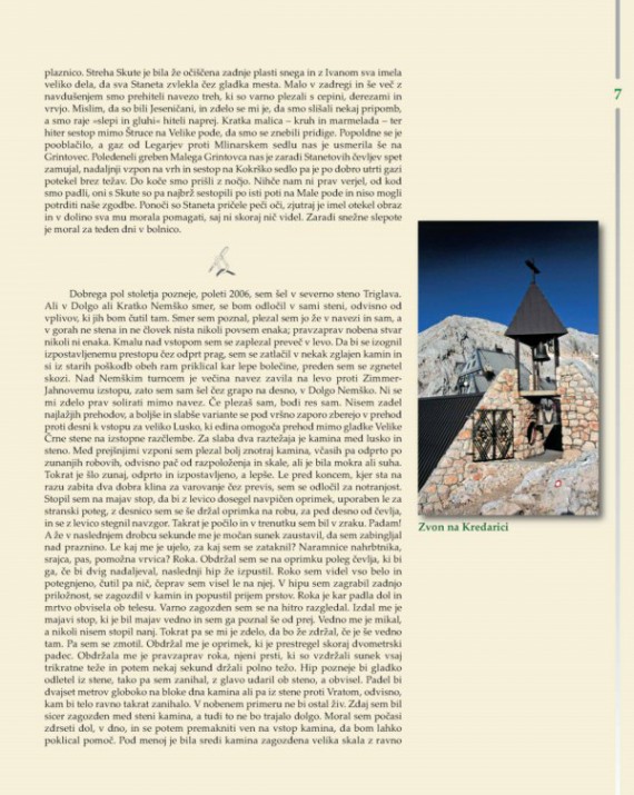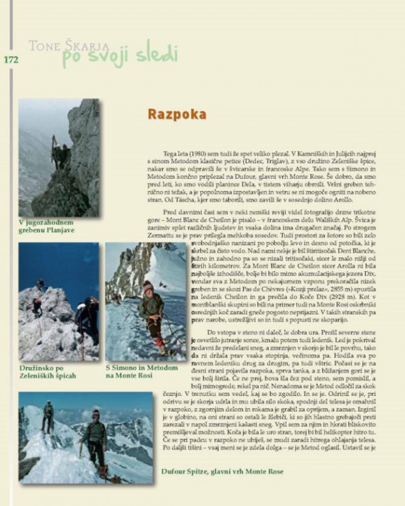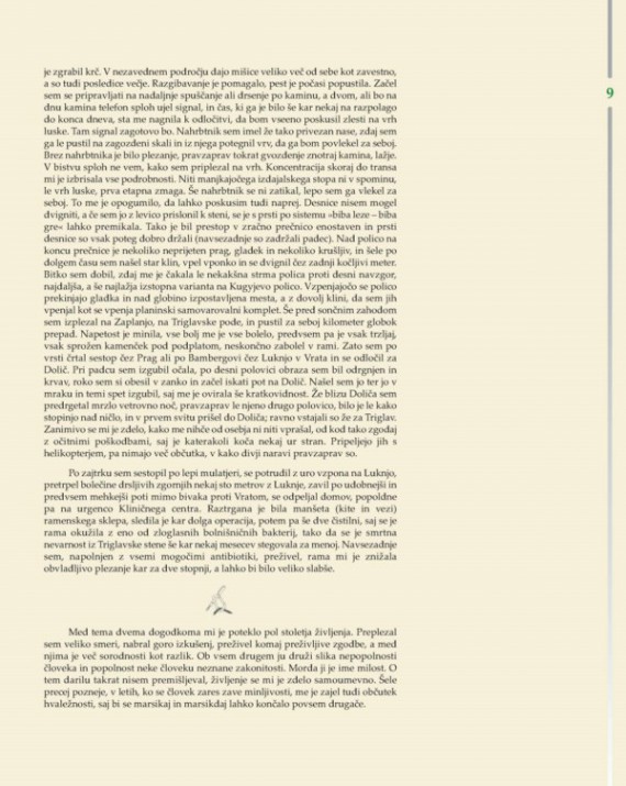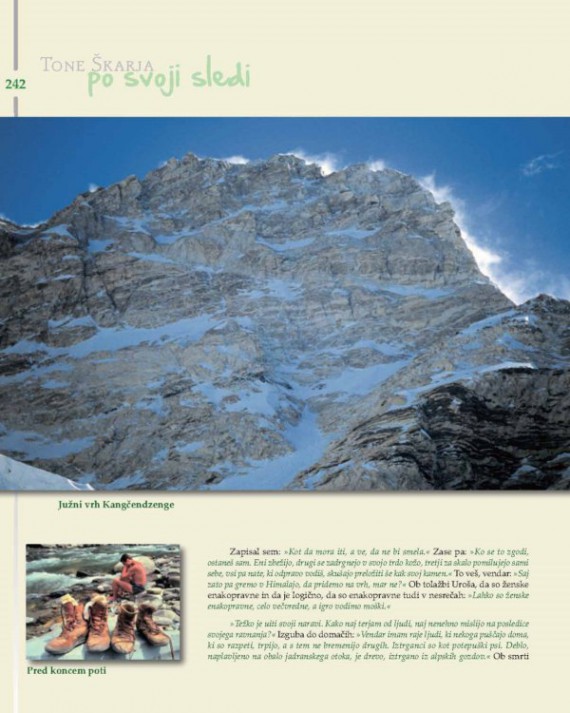 Naš alpinist, gorski reševalec, publicist in pisatelj Tone Škarja, ki je letos prejel tudi Bloudkovo plaketo za življenjsko delo v športu, je svoje najobsežnejše delo pisal pravzaprav vseh 55 let svojega alpinističnega udejstvovanja, najprej na kratko v svoj dnevnik in sam zase, sedaj pa odkritosrčno in temeljito tudi za vse bralce. Uganko življenja in smrti si avtor zastavi prav na začetku knjige ter nanjo posredno išče odgovor in odgovarja skozi svoje delo, zapiske, odprave, bilo jih je kar 17, vzpone, doživetja, prijatelje in vse do konca knjige skozi pot samo. "Zakaj je nekaterim dano preživeti vse nesreče, druge pa že prva za vedno izloči? Zakaj so naše sledi različno dolge? Zakaj sem sam lahko vse preživel? Tega se seveda nisem odločil sam, vedno pa sem čutil odgovornost do življenja," je dejal avtor.