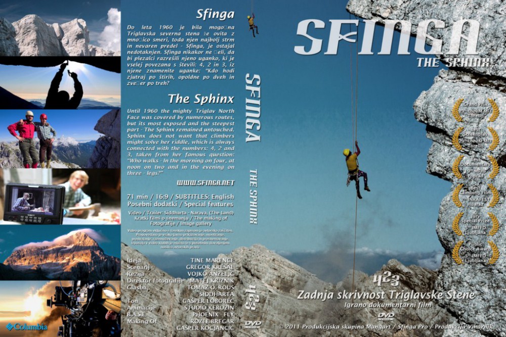 četrtek, 8. december 2011, ob 0. uri, ogledov: 3231 Film Sfinga na DVD in BluRay formatuPlaninska kultura | | | Objavil(a): Zdenka Mihelič | | Film Sfinga bo na formatih DVD in BluRay (HD) dostopen od 20. decembra 2011. Redna cena v formatu DVD bo znašala 15 EUR, Blueray-a pa 25 EUR. Ob prednaročilu na naslovu filmsfinga@gmail.com si lahko zagotovite 20 % popusta. | DVD in Bluray vsebujeta: