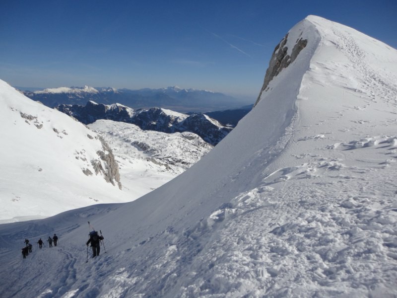 - Upoštevajmo tudi, da na grebenih veter ustvarja snežne opasti, ki se lahko pod našo težo odtrgajo, zato hodimo nekaj metrov pod grebenom na privetrni strani.