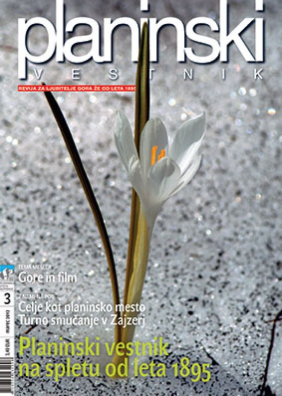 USPEŠNO ZAKLJUČEN PROJEKT 4 Končana je digitalizacija vseh Planinskih vestnikov. Pogovor z Andrejem Stritarjem, vodjem projekta. Vladimir Habjan GORE IN FILM 6 Glavna je dobra ideja. Viktor Grošelj, filmski ustvarjalec. Dušan Škodič Pomembna je zgodba. Pogovor s snemalcem Matjažem Fistravcem. Boris Strmšek RAZMIŠLJANJE 14 Hodite sami? Nina Pisk ZAHTEVNA BREZPOTJA 16 Martuljških pet. Samotno prečenje od Kurjega vrha do Frdamanih polic. Ivan Vreček in Vili Ekar SVET 21 Dragulji Sinaja. Gebel Musa - Mojzesova gora. Olga Kolenc ODPRAVA V CENTRALNO AZIJO 25 Med Kirgizijo in Kitajsko. Pripoved o uspešni slovenski odpravi. Tadej Golob Z NAMI NA POT 30 Hribi na levem bregu Savinje. Celje kot planinsko mesto. Andreja Erdlen Opisi 33 Srebotnik, 700 m. Andreja Erdlen Tovsti vrh (Tovst), 834 m. Andreja Erdlen Grmada, 718 m. Andreja Erdlen Vipota, 532 m. Andreja Erdlen