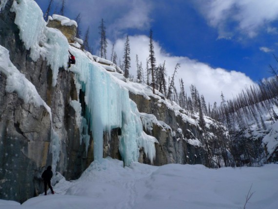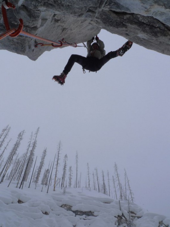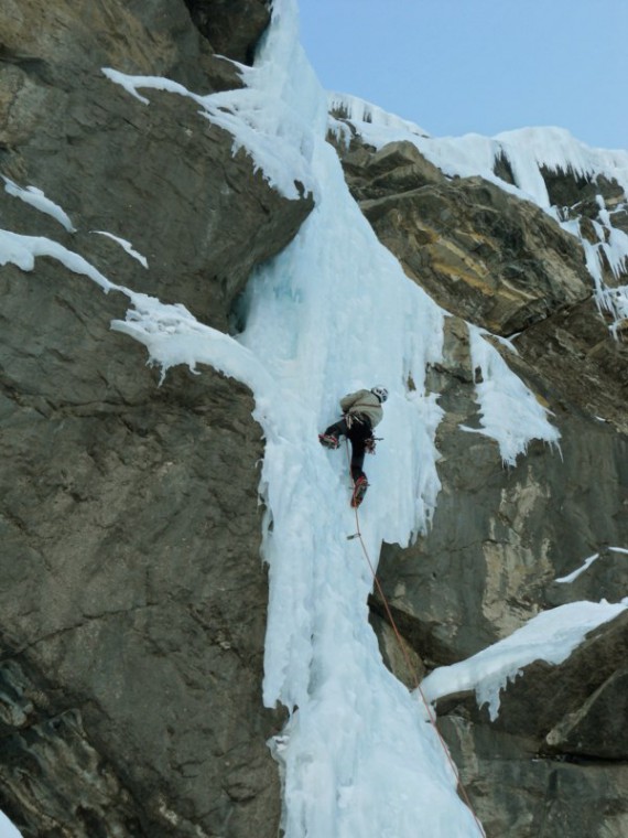 Sedaj je napoved tudi za hribe boljša, saj se obeta bolj toplo vreme in s tem, da se bo tudi zgoraj začelo plaziti, bodo boljše razmere v stenah. Drugače pa plezamo vsak dan. Če je zares slabo in močno sneži, plezamo v plezališčih dry in mix eno-raztežajne smeri do M10-. Splezali smo tudi že nekaj težjih slapov in mixov tod okrog. Nekaj vzponov iz zadnjih dni: -- French Reality v Stanley Heandwall (V, M6, WI6+, 150m) - plezala Andrej Erceg in Dejan Koren -- Curtain Call (IV, WI6, 125m) - Andrej Erceg in Mitja Šorn -- Call of the Curtain (M7+, WI6, 125m) - Jernej Arčon in Dejan Koren -- Pilsner Ampitheatre: Jernej Arčon in Mitja Šorn plezala Traditional Ale, M7, WI5, 250m -- Lucky Lager M7+, WI6-, 250m - Andrej Erceg in Dejan Koren. Srečno iz Kanade, Dejan