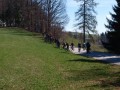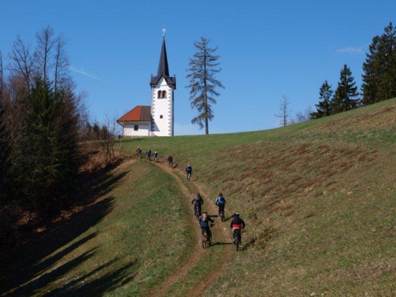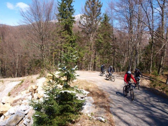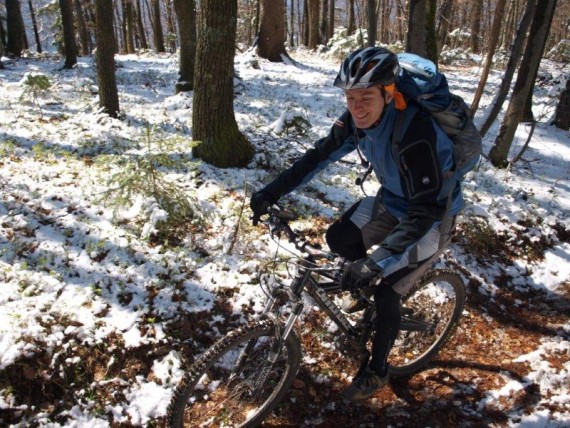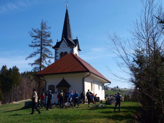 V hladnem jutru se je zbralo 23 ljubiteljev gorskih koles in kmalu smo se odpravili na pot. Dobre 4 kilometre s soncem obsijanega asfaltnega vzpona nas je dovolj ogrelo za nadaljevanje po lepi gozdni poti proti vrhu Sv. Primoža, kjer smo si ob cerkvici privoščili prvi daljši postanek. Izkoristili smo ga za dopolnitev zalog moči, fotografiranje okolice in Blegoša, ki se je, sveže zasnežen, ponujal kot na dlani, pa tudi za nabiranje regrata. Nato smo se počasi odpravili proti Javorju po poti, ki smo jo že predhodno izbrali, če bodo vremenske razmere primerne. Nizka temperatura je namreč poskrbela za odlično podlago in lahko smo nadaljevali do Plešavnikovega vrha, kjer se je skupina razdelila.