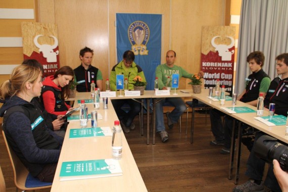 Na novinarski konferenci so sodelovali predsednik organizacijskega odbora tekmovanja Lorin Möscha, selektor slovenske članske reprezentance v športnem plezanju Simon Margon, tehnični vodja tekmovanja in strokovni sodelavec Komisije za športno plezanje PZS Tomo Česen, ter tekmovalci slovenske reprezentance v športnem plezanju na tej tekmi svetovnega pokala: članice Mina Markovič in Katja Vidmar, člani Klemen in Jure Bečan, Jernej Kruder ter mladinca Urban Primožič, Domen Škofic. Manjkali sta le Maja Vidmar in Mateja Hohkraut, ki se novinarske nista mogli udeležiti. Slovenske barve na domači tekmi svetovnega pokala v balvanskem plezanju bo tako zastopalo 9 tekmovalcev - 4 dekleta in 5 fantov. Mladinec Jure Raztresen, ki je prvotno nameraval nastopiti, je moral nastop zaradi poškodbe odpovedati.