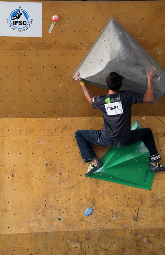 V današnjem polfinalu so plezalce čakali štirje balvanski problemi, prav tako so imele plezalke postavljene štiri balvanske smeri, in zanimivo - tako ženskam kot moškim je največ preglavic delal tretji balvan. V moški konkurenci je tretji balvan preplezal le lanskoletni zmagovalec tukajšnje tekme svetovnega pokala v balvanih Francoz Guillaume Glairon Mondet, ki tudi vodi po polfinalu. Pri ženskah vodi prav tako lanska zmagovalka tukajšnje tekme za svetovni pokal v balvanskem plezanju, Log 2011, Avstrijka Anna Stöhr. Anna in Guillaume sta tudi edina, ki sta v polfinalu preplezala vse štiri polfinalne smeri. Za vsak balvan je imel posamezni tekmovalec/-ka na voljo pet minut, v finalu pa bodo tekmovalci imeli za vsak izmed štirih balvanov na voljo le po štiri minute.