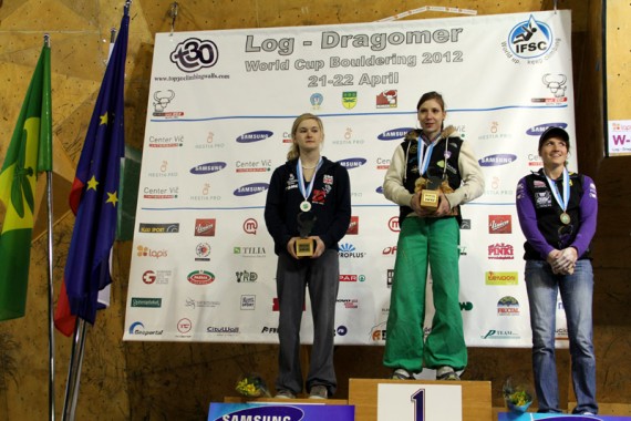 V lanskem letu smo na tekmi svetovnega pokala v balvanih na Logu od Slovencev videli dve finalistki, Katjo Vidmar in Natalijo Gros, ki je lansko leto zaključila svojo bogato tekmovalno pot. Katji pa letos v polfinalu nikakor ni šlo, čeprav je bila v nekaterih smereh blizu vrha. Zmagovalca lanske tukajšnje tekme za svetovni pokal v balvanskem plezanju, Log 2011: Avstrijka Anna Stöhr in Francoz Guillaume Glairon Mondet. KONČNI URADNI REZULTATI svetovnega pokala v balvanskem plezanju Log 2012 :