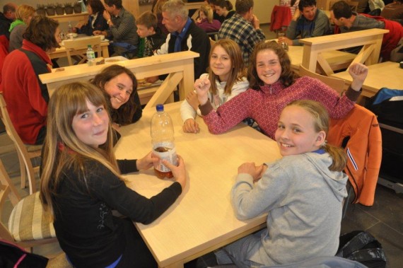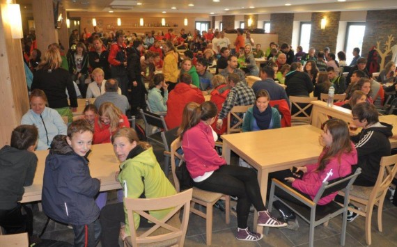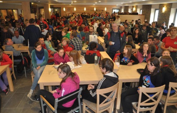 Vesele, utrujene, namočene tekmovalce je pričakal topel obrok v hotelu Golte in