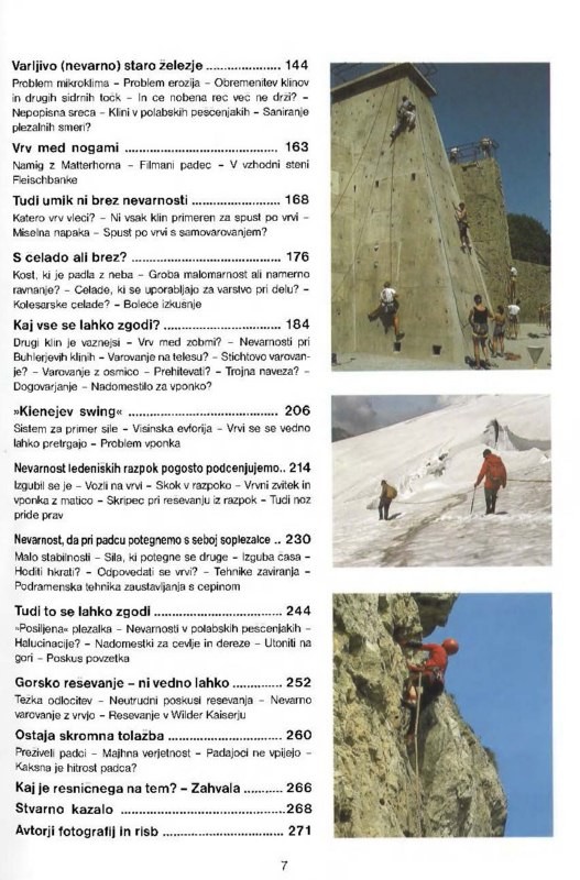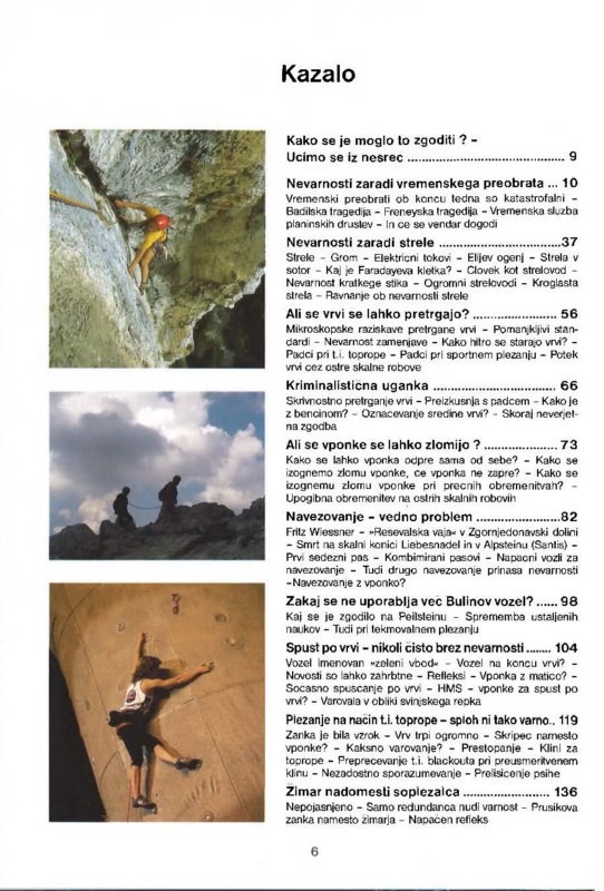 Knjiga svari planinca pred vsem, kar se mu lahko pripeti slabega v gorah. Opisani so dogodki, posledice, tudi nekaj sodnih epilogov in ugotovitev o objektivnih in subjektivnih vzrokih nesreč. Besedilo spremlja skoraj 300 odličnih slik.