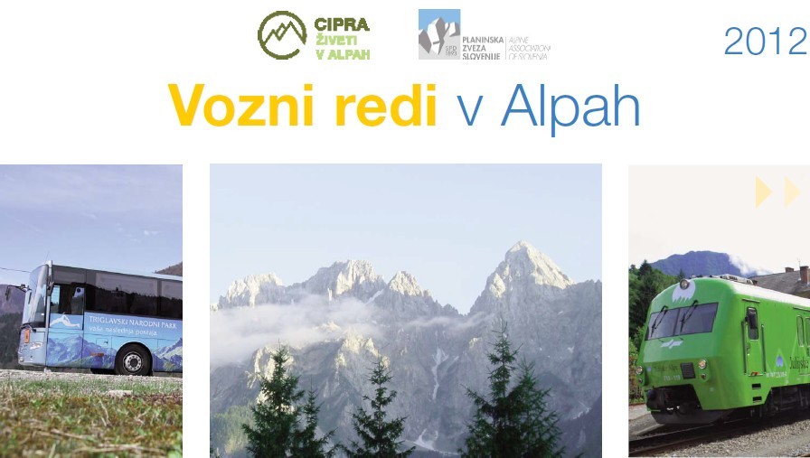 ponedeljek, 11. junij 2012, ob 0. uri, ogledov: 5262 V Alpe z javnim prevozom 2012Splošno | | | Objavil(a): Zdenka Mihelič | | Že četrto leto zapored je CIPRA Slovenija, društvo za varstvo Alp, s partnerji izdala knjižico Vozni redi v Alpah. Uresničili smo tudi tiskano izdajo angleške različice voznih redov za vse, ki prihajajo k nam iz tujine. |