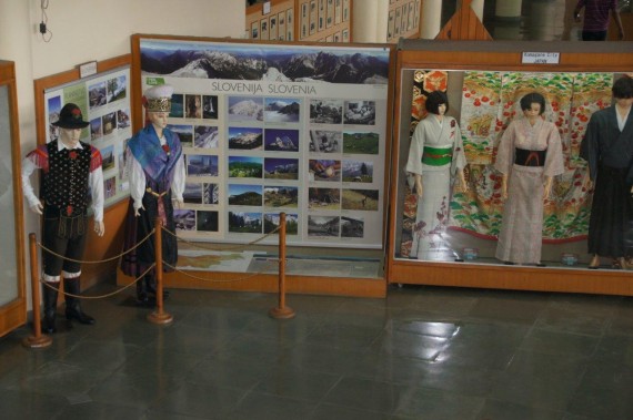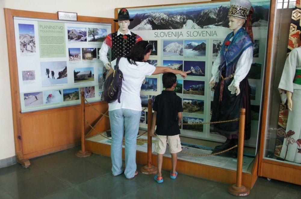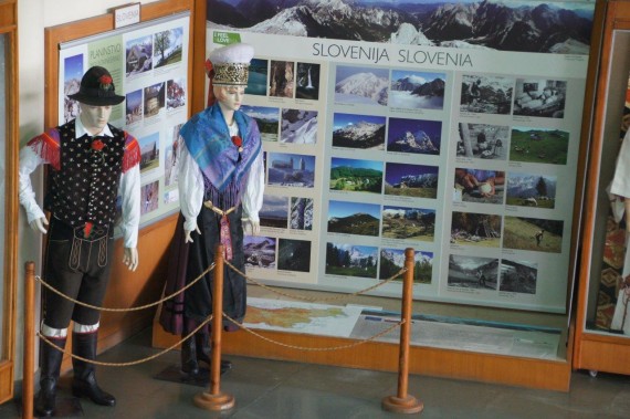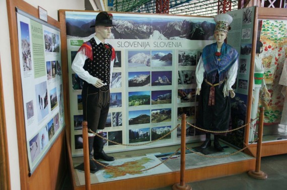 Ob odprtju februarja 2004 je alpinist Tone Škarja, vodja številnih alpinističnih odprav in načelnik Komisije za odprave v tuja gorstva PZS, dejal, da je International Mountain Museum po površini gotovo največji tovrstni na svetu. Največji finančni delež je bil japonski (90 %), nato indijski, nepalski in korejski, drugi pa s(m)o prispevali material za razstavo. Odlično je predstavljena Himalaja v geološkem in etnološkem smuslu. Ljudstva gorskih dežel so za zdaj predstavljena le z narodnimi nošami himalajskih Nepalcev ter z - gorenjskim parom v narodni noši. Naš gorenjski par je najlepši in deležen dosti večje pozornosti od vseh ostalih, čeprav je delež drugih znatno večji. Ob slovenski narodni noši, predstavljeni z gorenjskim parom, so še fotografije Slovenije, torej Alp, Bleda, Krasa, Cerkniškega jezera, Sečoveljskih solin, Pirana in značilne poljedelske pokrajine. Med zemljevidi je predstavljena Slovenija kot središčni del Evrope. Od štirih alpinistično oblečenih in opremljenih lutk je ena naša, in sicer z opremo od Trisula (1960) prek Kangbačnov (1965 in 1974) do Everesta (1979) in Lotseja (1981). Ob tem je Tone Škarja z ekipo poskrbel tudi za zapis podatkov o teh petih odpravah.