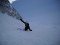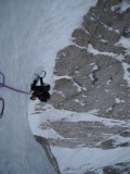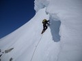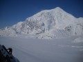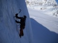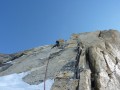 Ob prvem lepem dnevu sva z Arnetom odšla plezat Jugozahodni raz Mt. Francesa. Lepo plezanje po včasih kar ozkem razu. Prvi od petih težjih raztežajev, v ozadju Foraker