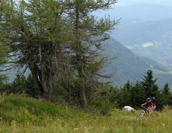 V nedeljo se je vreme resnično izboljšalo, tako smo se iz Žerjava podali na ogrevanje po dolini proti Mežici ter nato pričeli z zložnim vzponom proti Uršlji gori. Vseskozi so nam pogledi uhajali proti Peci, ki se nam je vedno bolj mogočno prikazovala na drugi strani doline. Po krajšem postanku in okrepčilu pri koči na Naravskih ledinah, smo nato družno »napadli« vražje strmi klanec proti vrhu. Na zadnjem kilometru in pol vožnje smo namreč naredili kar 300 višinskih metrov. Razgledi z vrha ter topel čaj v koči so naš trud vsekakor več kot poplačali. Sledil je le še povratek v Žerjav, kjer so še danes vidni vplivi nekdanjega rudnika svinca na to prelepo dolino.