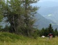 V ponedeljek, četrti dan tabora, je bil načrtovan počitek. Ker pa smo vsi udeleženci bolj »nemirne narave«, kot se je kasneje izkazalo, smo tudi ta dan bili aktivni. Ena skupina se je namreč peš podala na Bistriško Špico (zahodni vrh Pece), dva vodnika pa sva popeljala zamudnike po trasi ture prvega dne, tako da le-ti niso bili prikrajšani za prijeten obisk Topice. Popoldan smo izkoristili za delavnico o osnovnih popravilih kolesa, ki pa je postala pravi kotiček za improvizacijo, saj smo izdelali zelo inovativno rešitev za nedelujočo ročko hidravlične zavore (le-ta je nato uspešno vzdržala še dva dneva »mučenja«).
