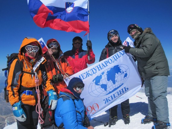 Ob aklimatizacijskih vzponih na vrhove in ledenike v okolici Terskola v ruski regiji Kabardino-Balkariji na Kavkazu, ogledu alpinističnega in lovskega muzeja V. S. Visocskega, obisku izvira mineralnih vod, itd. je bila skupina pripravljena za vzpon v nedeljo, 2. septembra, ko je v jasni a mrzli noči osvojila vrh Elbrusa. Na vrhu so bile evforično razvite zastave Slovenije, PZS in nova zastava Ministrstva za zunanje zadeve Ruske federacije.