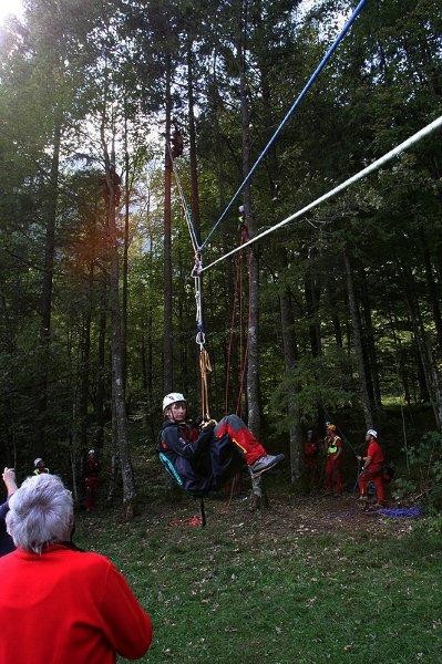 Kamnik prikazali reševanje padalcev z dreves s pomočjo tirolske žičnice. Na