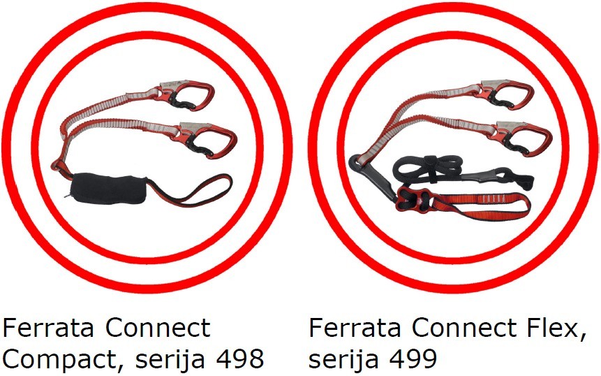 1. Stubai Ferrata Connect Compact (koda izdelka 988470) s serijsko številko RP498, in 2. Stubai Ferrata Connect Flex (koda izdelka 988450) s serijsko številko RP499.